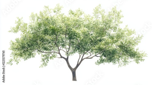 Vector Watercolor Green Tree or Forest Side View Isolated on White Background for Landscape and Architecture Drawing