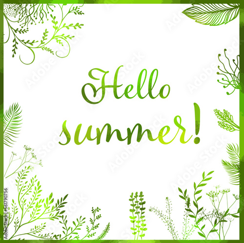 Vector watercolor illustration. Laurel Wreath. Floral design elements. Hello summer. Green branches. Vector illustration