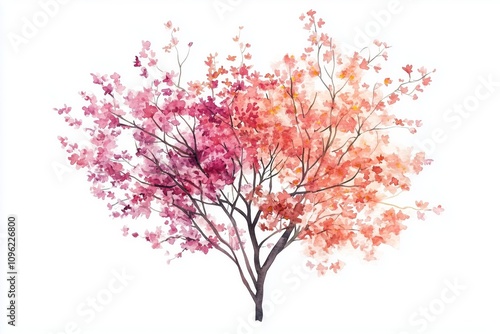 Vector watercolor of blooming tree top view isolated on white background for landscape plan and architecture drawing, elements for environment and garden,botanical elements ,blooming flowers in spring