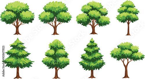 Vector watercolor of tree side view isolated on white background for landscape and architecture