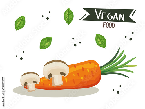 vegan food poster with carrot and mushrooms vector illustration design