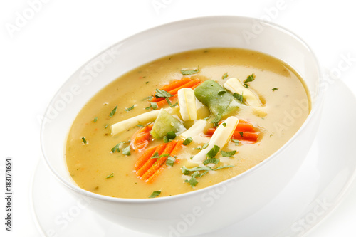 Vegetable soup on white background