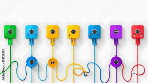 Versatile Power Connections with Colorful Plugs and Sockets in Background