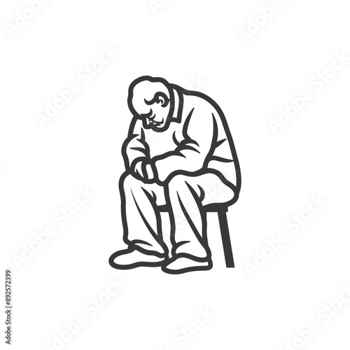 very, sad, elderly, man, sitting, alone, minimalist, line, art, icon, logotype, symbol, bw, design