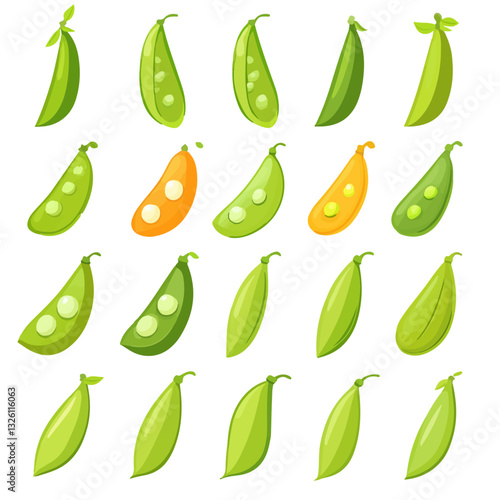 Very Simple flat 2D icon orange and green peas seed set isolated on a white background, vector, flat design, vector, flat design, animation design, flat 2D icon, minimalist design, vector