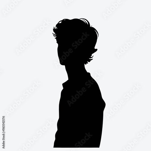 very simple, flat, and minimalist silhouette of a teenager in black color on a white background