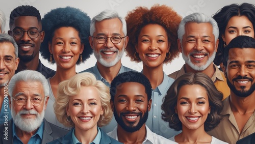 Vibrant collection of men and women showcasing a cheerful assembly from various generations, styles, and ethnicities. Representation of societal diversity. Isolated flat illustration against a whit...