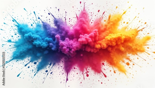 Vibrant colorful powder explosion mimics Holi celebration. Vivid hues create dynamic artistic design. Isolated on white background. Playful, joyful illustration. Watercolor effect adds artistic