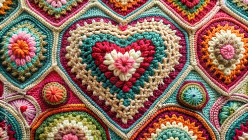 Vibrant Crochet Pattern Featuring Colorful Hearts and Textures