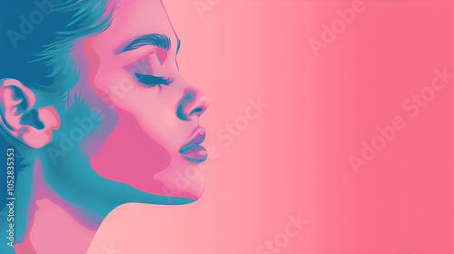 Vibrant Feminine Pop Art Style Portrait Illustration in Soft Pink and Blue Hues