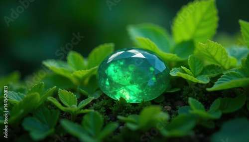 Vibrant green opal nestled within a bed of lush green foliage, Opal, vibrant green
