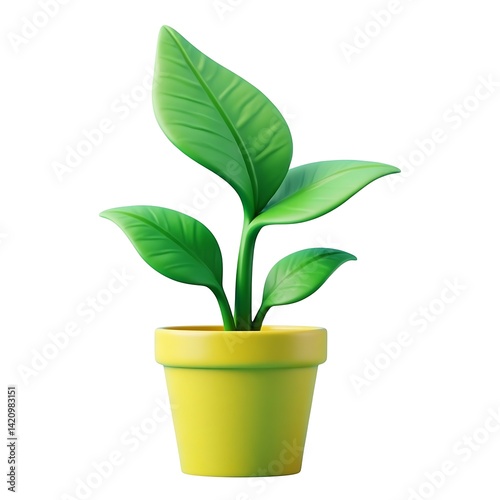 Vibrant green plant in yellow pot on white background 3D render