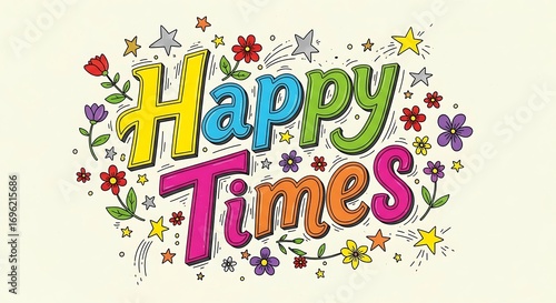 Vibrant hand-drawn lettering celebrates joyful moments with colorful flowers and whimsical stars, inspiring happiness and good cheer for any celebratory project