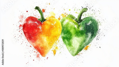 pepper, love, food, nubes, vegetable, colours, healthy, cookery, red, yellow, shape, garnish, alimentary, ingredient, vitamin, delicious, organic, chef, grill, local, artistry, farmer, nourishment, wellness, harvest, design, vegan, herb, allergy, eat, favor, salad, receipe, spicey, produce, crunchy, table, season, watercolor, paint