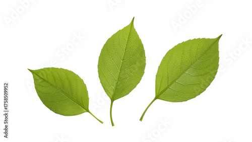 Vibrant Leaf Trio: A close-up shot of three radiant green leaves showcases their delicate veins and intricate details. They represent growth and the simple beauty of the natural world.