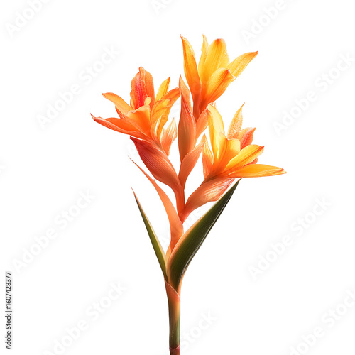 flower, tropical, exotic, orange, red, yellow, bloom, blossom, plant, botanical, nature, flora, garden, leaf, stem, green, vibrant, bright, colourful, beauty, delicate, fragile, botany, floral, flora, organic, natural, summer, spring, decoration, design, element, cut-out, isolated, illustration, graphic, art, detail, macro