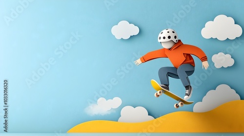 Vibrant Paper Cut Abstract Skateboarder Mid Jump Sports Art Dynamic silhouette figure in motion with layered colors and geometric shapes for creative sports and lifestyle design