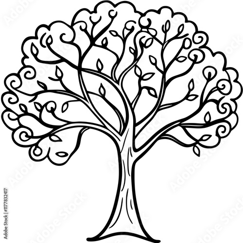 Vibrant Spring Tree and Whimsical Tendrils - Vector Illustration