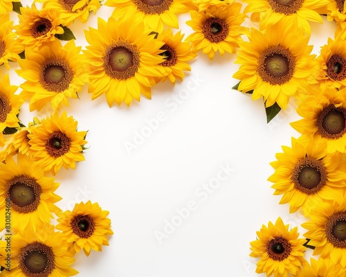 Vibrant sunflower frame on a white background, creating a fresh and cheerful space for text or design elements.