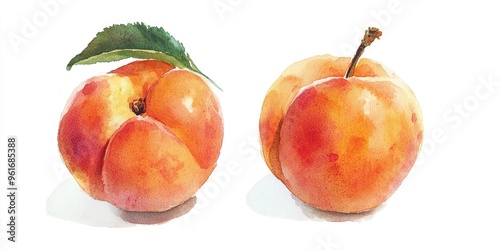 Vibrant Watercolor Peaches: A Delightful Still Life of Summer's Juiciest Fruits