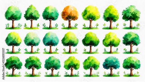 watercolor, illustration, summer, spring, cartoon, nature, greenery, foliage, isolated, white background, art, design, landscape, botanical, artistic, seasonal, aesthetic, whimsical, environmentally friendly, flora, hand-painted, creative, playful, conceptual, stylised, environment, cheerful, lush, organic, picturesque, contemporary, fantasy, tranquil, serene, bright, imaginative
