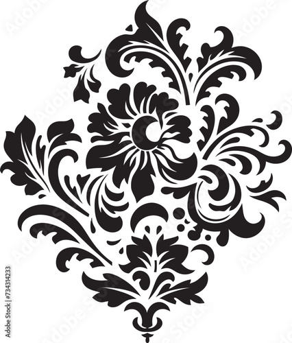Victorian Valor Vector Floral Design with Black Embellishments Antique Allegory Black Vintage Floral Icon