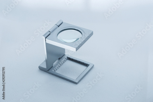 View of a linen tester magnifying glass used by philatelist hobbyst.