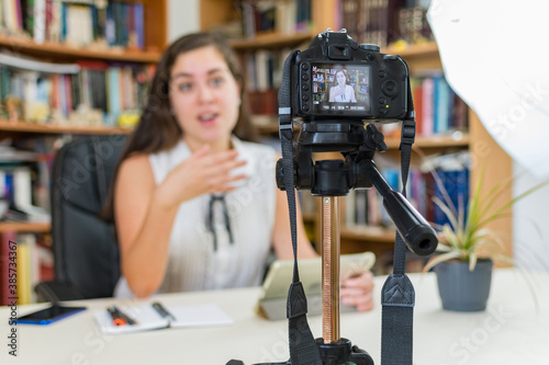 smile, training, female, happy, young, woman, technology, camera, cyberspace, home, marketing, live, record, speak, conversation, cyberspace, distance, advertising, communication, blog, funny, online, interview, microphone, profession, social, review, media, business, production, student, education, professional, entertainment