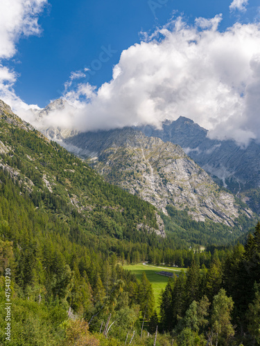 View towards Presanella mountain range. Val di Genova in the Parco Naturale Adamello, Brenta, Trentino, Italy, Val Rendena