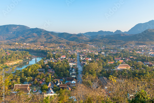 laos, river, view, landscape, nature, viewpoint, mountain, city, travel, holiday maker, asia, tour tourism, culture, town, up high, mekong, top, heritage, building, traditional, urban, scene, tree, temple, beautiful, khan, sky, horizontal, ancient, mount, colours, light, orange, architecture, sun