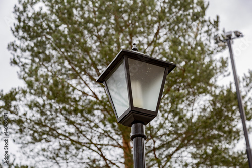 Vintage black lantern on a city street