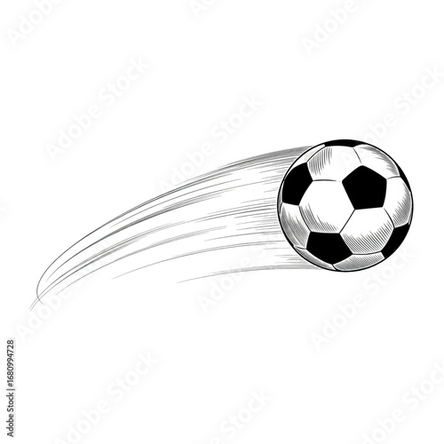 soccer, ball, sport, football, motion, speed, movement, kick, game, play, team, competition, goal, score, victory, succeed, athlete, player, action, graphic, design, vintage, retro, style, drawing, vignetting, art, creative, concept, black
