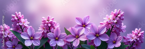 violet lilac flowers bloom together beautiful garden design artistic background mixed purple