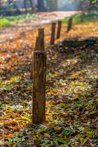 forest, way, autumn, leaf, sunshine, countryside, intake, tree, nature, park, fall, leaf, season, green, forest, yellow, grass, outdoors, brown, rail, paint, spring, bench, red, colourful
