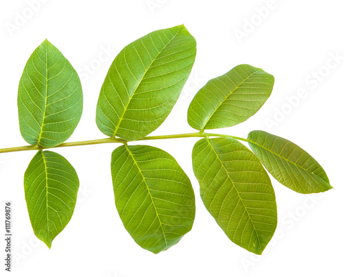 walnut leaves on a branch. isolated on white background