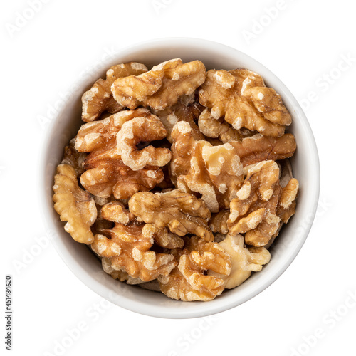 Walnuts in a bowl isolated over white background