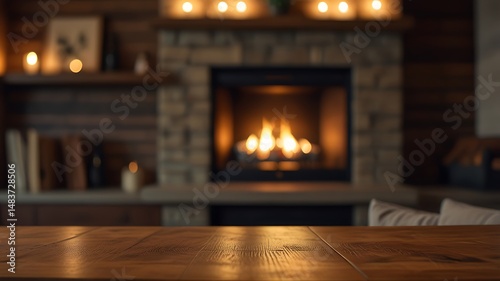 fireplace, wood, table, home, interior, cosy, warm, blurred, background, bokeh, fire, hearth, mantel, shelf, decor, decoration, light, candlelight, rustic, stone, brick, blurred background, out of focus, family, comfort, christmas, thanksgiving, holiday