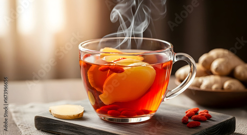 Warm Ginger and Goji Berry Tea: A Rustic Still Life
