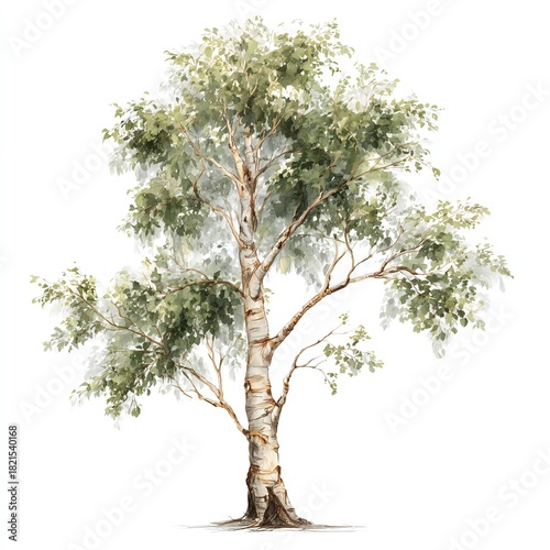 tree, birch, nature, plant, leaf, green, bark, white, trunk, branch, foliage, wood, growth, environment, botanical, garden, spring, summer, deciduous, forest, flora, organic, natural, illustration, watercolor, art, artistic, painting, graphic, element, design, isolated, background, greenery, leafy, seasonal, ecosystem, render, fresh, leaf, tree branch, single