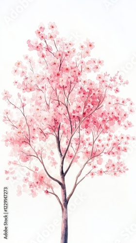 Watercolor Cherry blossom blooming flower,Sakura tree or forest side view,Cherry tree spring flower background,elements for environment and garden,botanical in spring season.