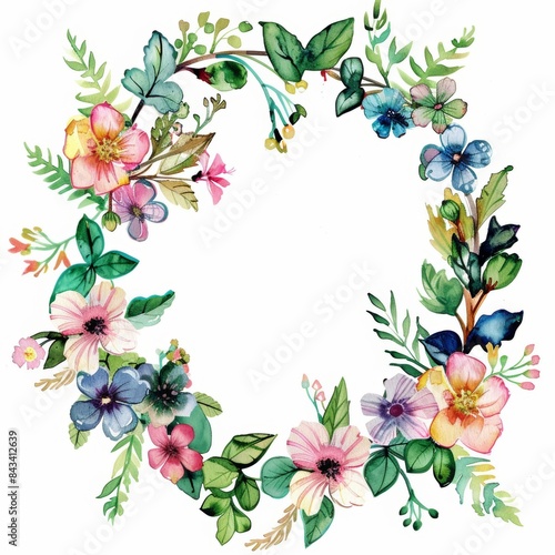 Watercolor illustration of a beautiful floral wreath.