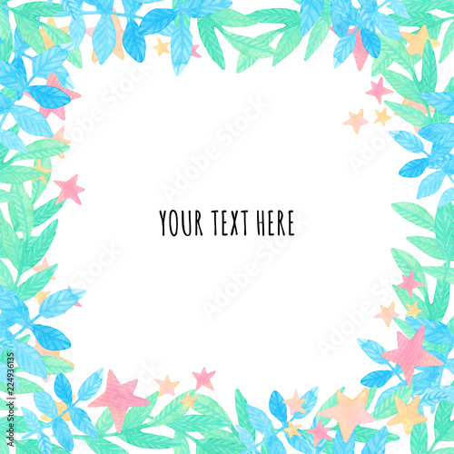 watercolor template frame. magic plant, leaves isolated on white background. design for invitation, postcard, banner