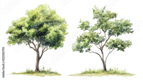 Watercolor Tree Side View for Landscape and Architecture Drawing