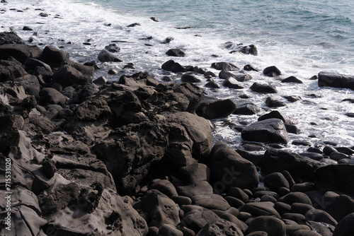 waves on the rocky beach in southern Jeju Island