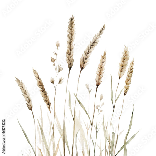 Wheat field silhouette on clean setting, rustic charm in agricultural illustration, elegant meadow floral art, simple country decor