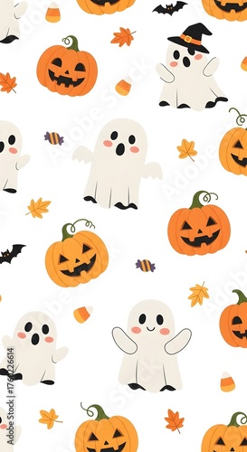 halloween, ghost, pumpkin, seamless, pattern, invitation, friendly, children, motif, picture, children, skittish, ghost, bat, joyful, smiling, inviting, theme, graphic, artwork, playful, whimsical, drawing, party, event, fun, treat, paper, seasonal, happy, vertical, vibrant, greeting, maple, light, wallpaper, cartoon, print, set, white, element, collection, festive, art, cover, abstract, wrapping, adorable