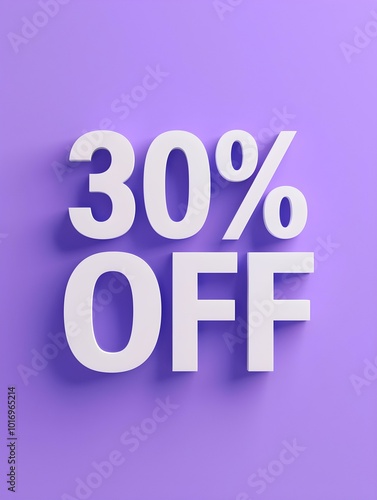 White '30% OFF' Promotional Sign on a Purple Background