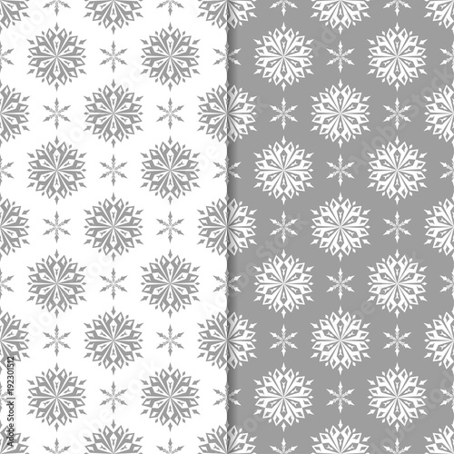 White and gray floral backgrounds. Set of seamless patterns