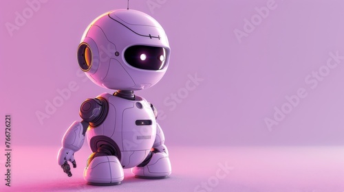 White and Silver Robot with Friendly Face on a Soft Purple Background