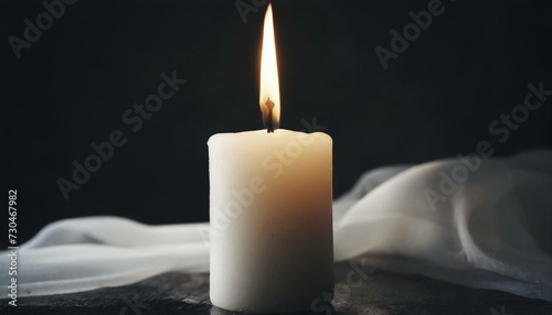 White burning candle on a black background